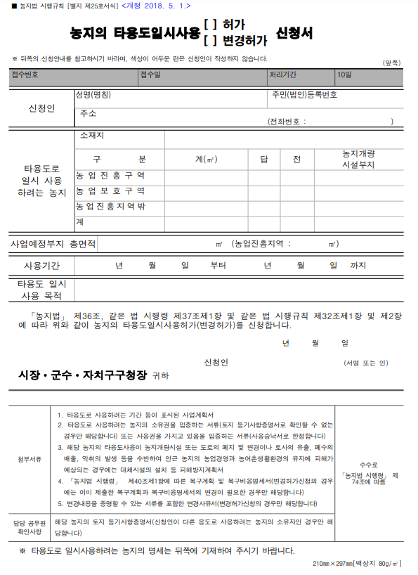 ![[별지 제25호서식] 농지의 타용도일시사용(허가¸ 변경허가)신청서(농지법 시행규칙)-앞면](https://blog.kakaocdn.net/dna/lEhGp/btsKkjBZvAU/AAAAAAAAAAAAAAAAAAAAAFYRQ_dgQ8knjGJr6aSBBoURSV0X072fBhbaVG7vHJyl/img.png?credential=yqXZFxpELC7KVnFOS48ylbz2pIh7yKj8&expires=1764514799&allow_ip=&allow_referer=&signature=S%2BaLk1SLE3K2pLkl1yWa9JwY49A%3D)